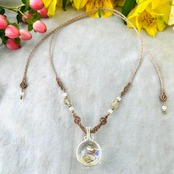 まるでシャボン玉が魔法で石に変えられたかのような、虹色に輝く水晶のマクラメ編みペンダントです✴︎